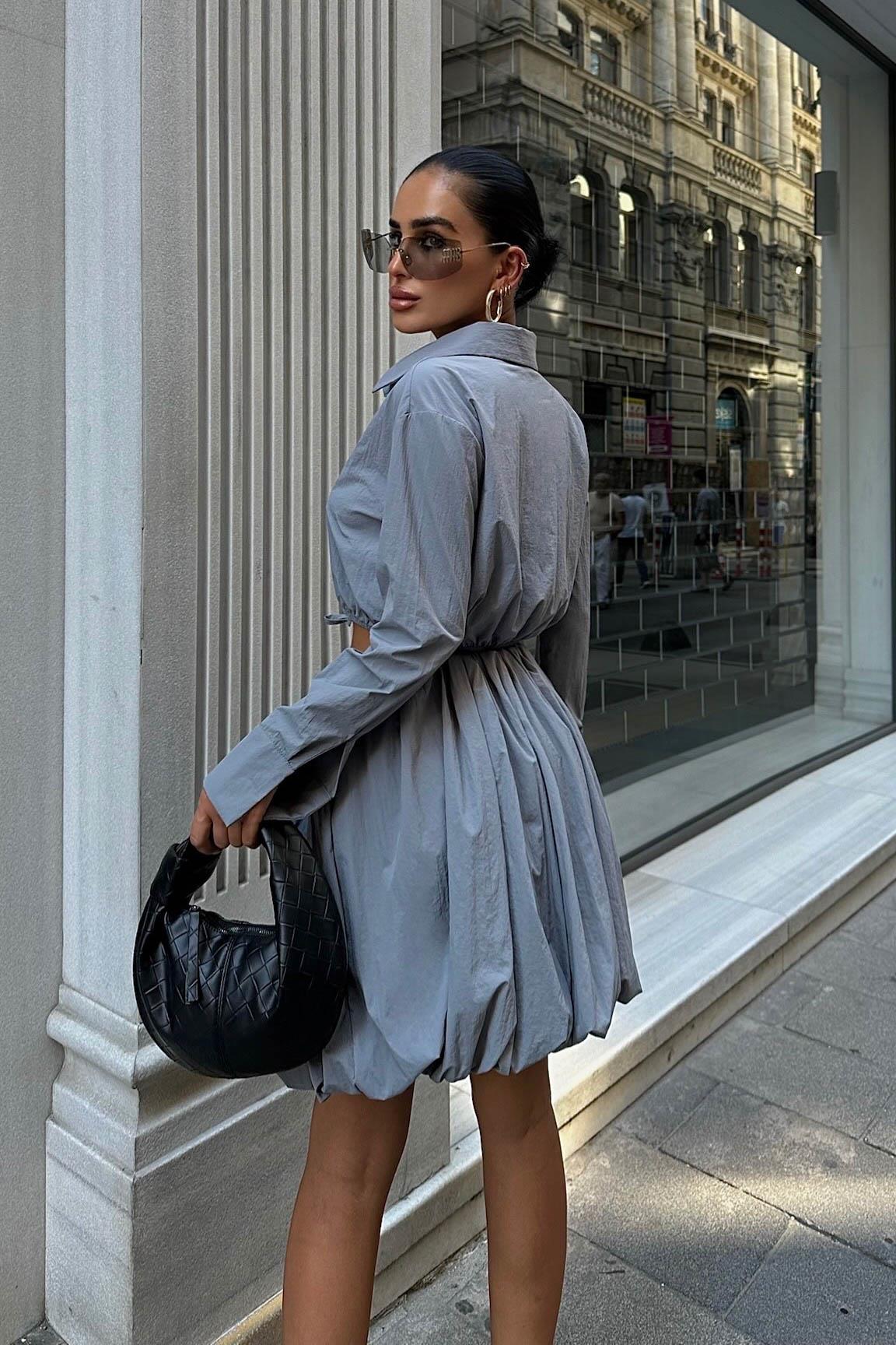 Turn heads with the Austin Mini Balloon Skirt Set – a bold and fashion-forward two-piece featuring a structured long sleeve top with tie-front details and a voluminous mini skirt. The cropped design and cut-out waist give this look an edgy, street-chic vibe perfect for standing out. Whether in classic black or cool gray, it’s a must-have statement piece.